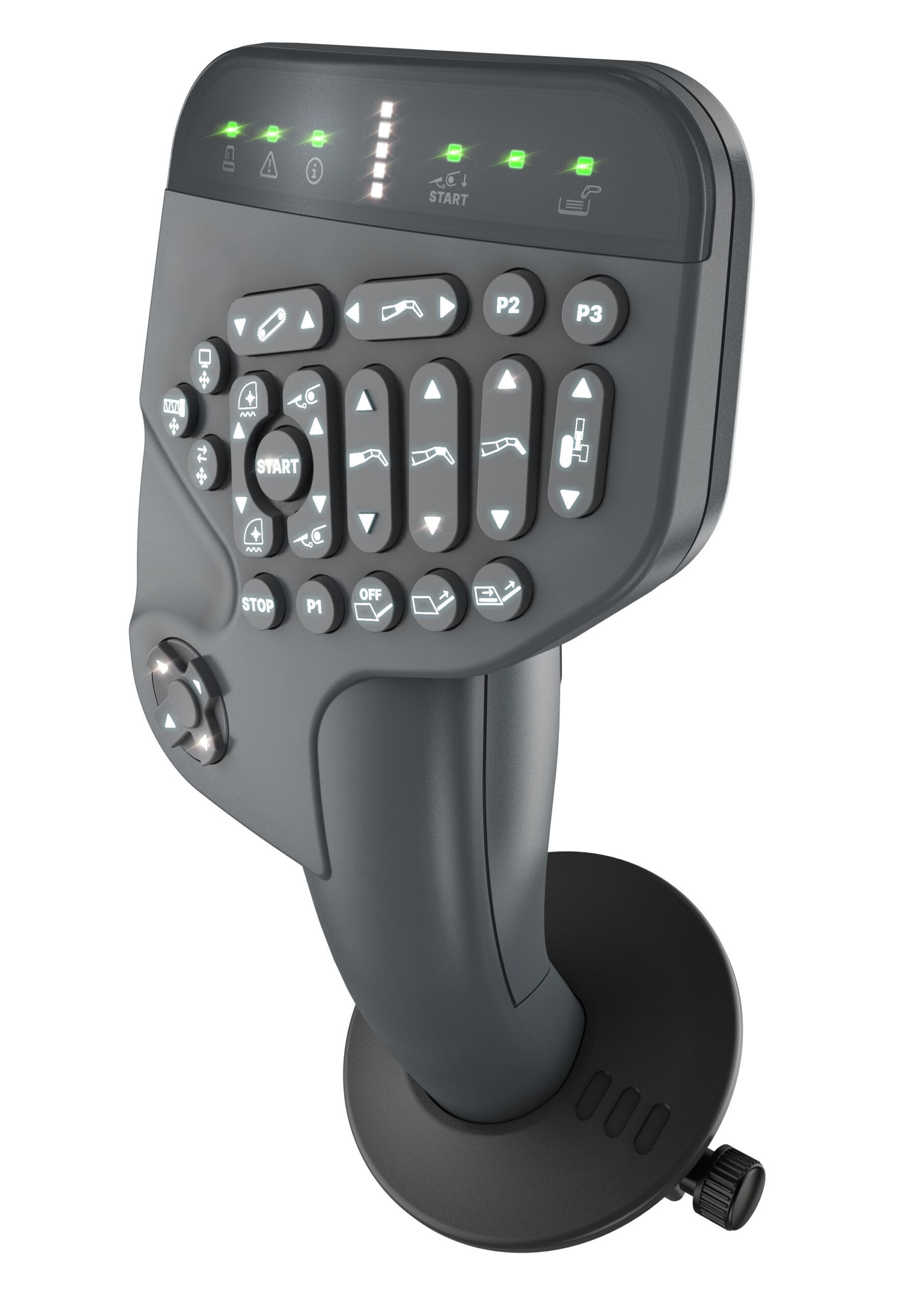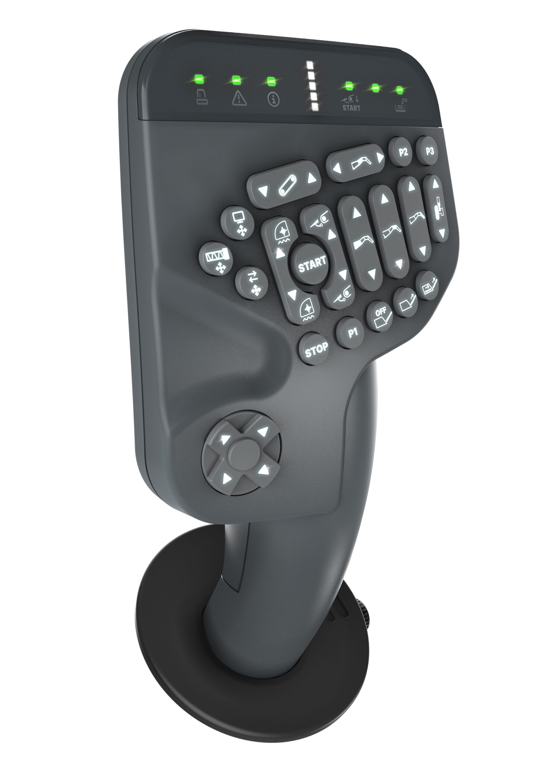 Thanks to its modular architecture and configurable connectivity, the joystick can be integrated into both self-propelled and trailed machines, offering precise and safe operation.